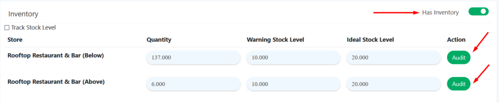 ’ under ‘Action’ column - Scroll down to ‘Inventory’. Make sure the ‘Has Inventory’ toggle switch is on