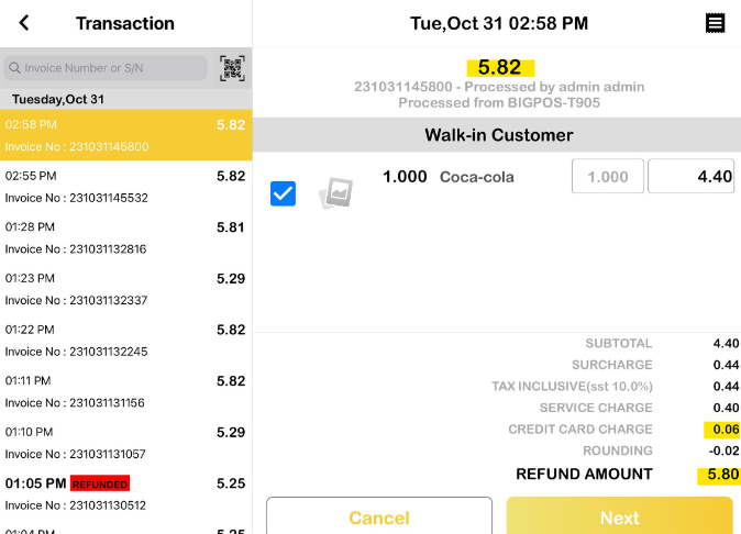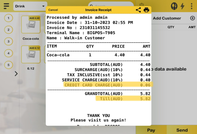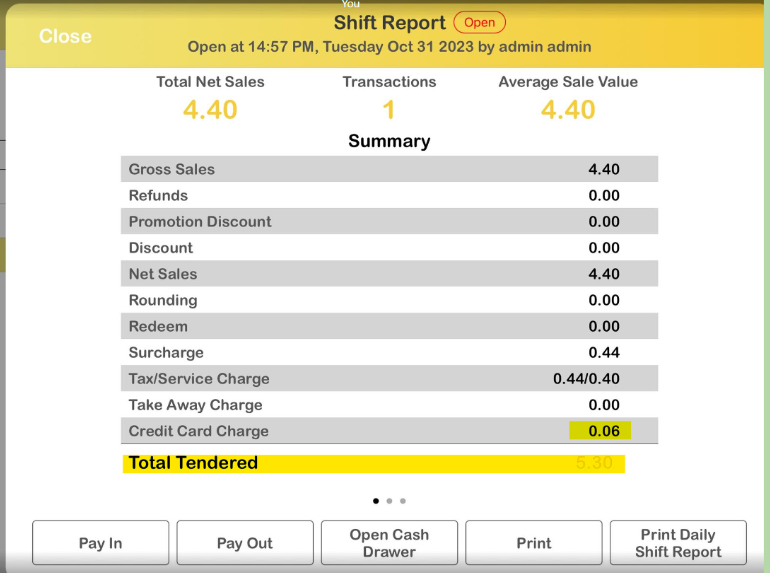 a) Any payment made using credit card charges will be displayed in the shift report, apps, and the QR Menu summary as ‘Till Surcharge Credit Card Charge“.