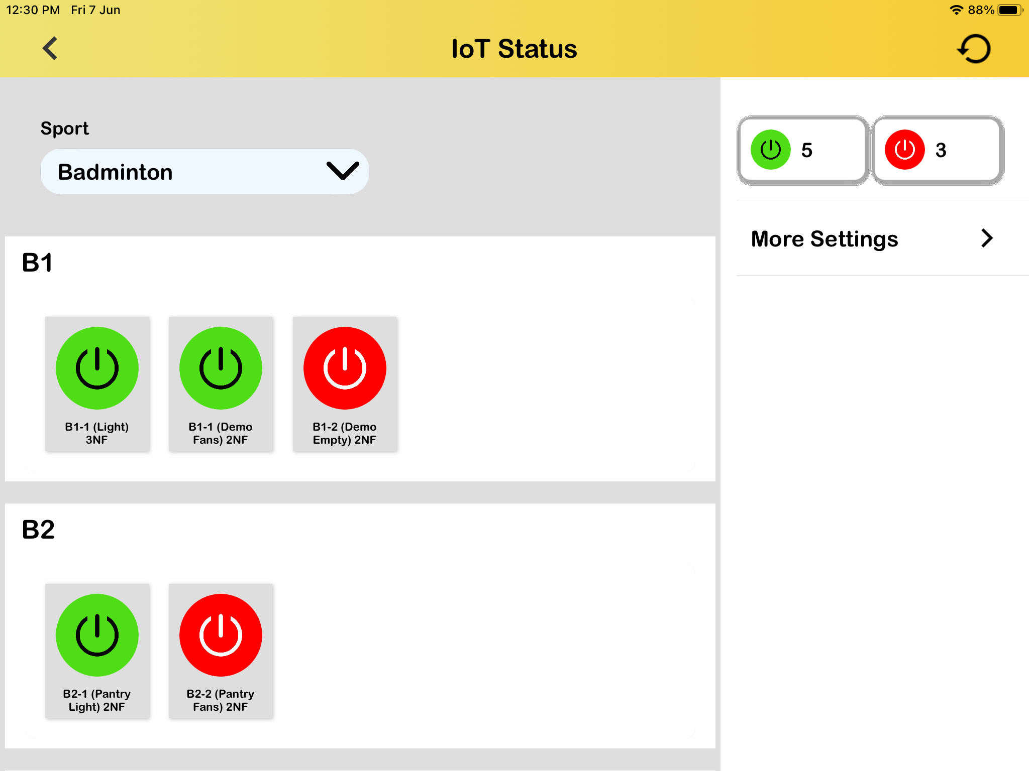 Main focus on IoT application was on Manage button. User can control the devices (lighting/fan) just by clicking any virtual switch on IoT status page ;