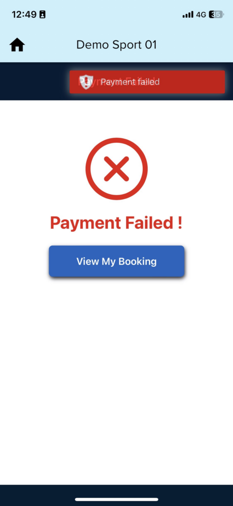 - But if payment unsuccessful, ‘Payment Failed’ page will prompted out and user also can view their unsuccessful booking and need to click ‘Pay Now’ button to complete the transaction again.