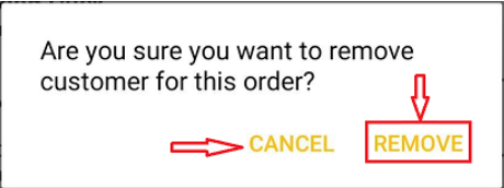- A message will be prompted to ask the merchant if they want to perform this action to remove the customer, click ‘Remove’ to confirm or ‘Cancel’ to keep the customer in this transaction.