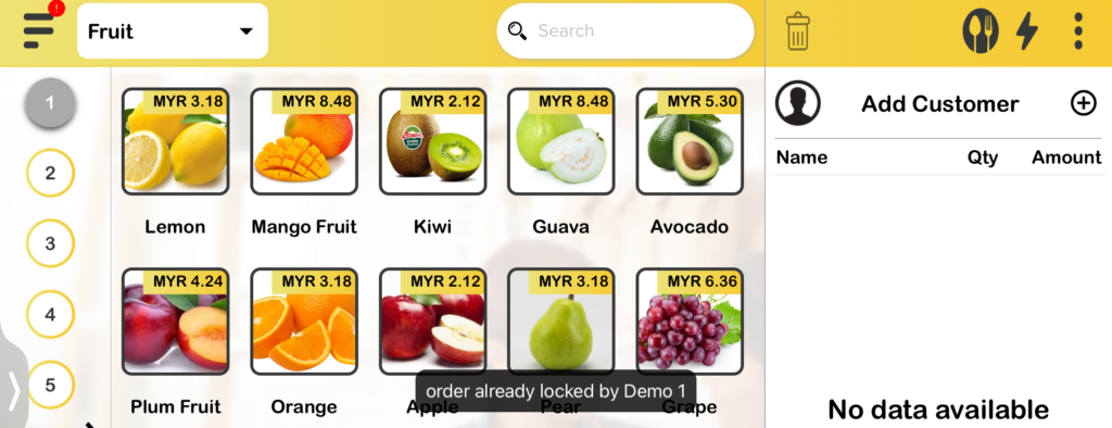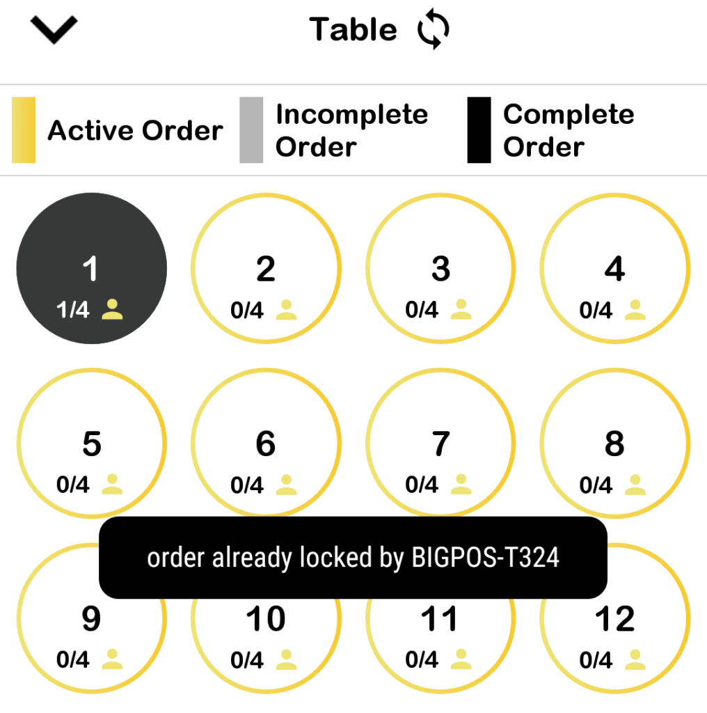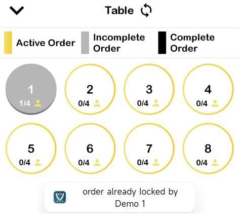 - In this example, waiter from Demo 1 will be creating a new order in Table 1. Hence, Table 1 will be locked by Demo 1 and other devices are prevented from accessing Table 1.