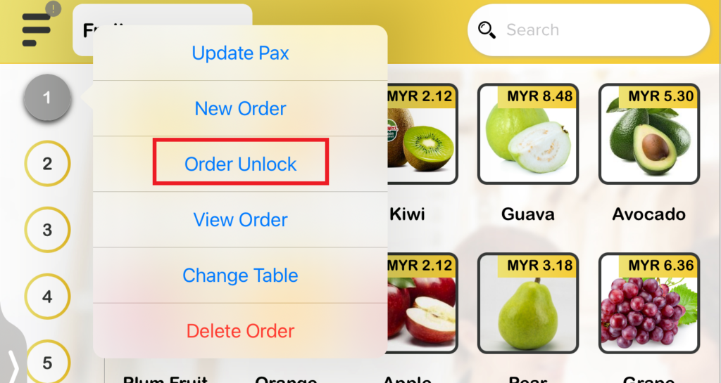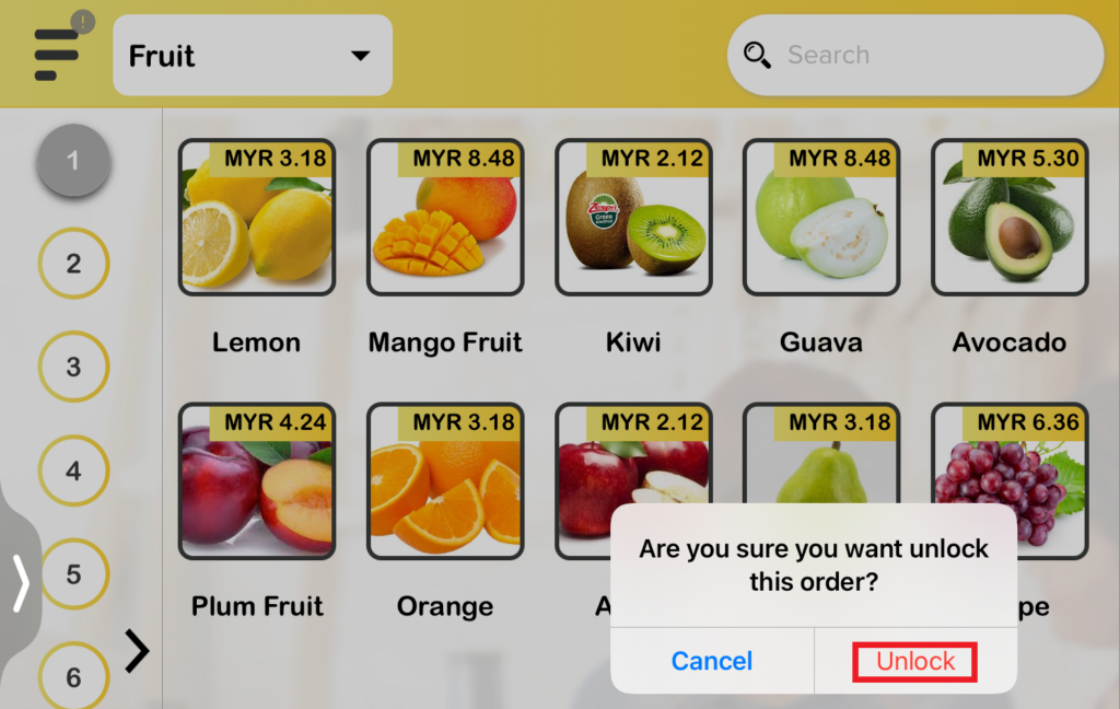 - Only after the order in Table 1 is finalized from the Demo 1 user, then the BIG POS Pro user can proceed to select ‘Order Unlock‘ to access the table.