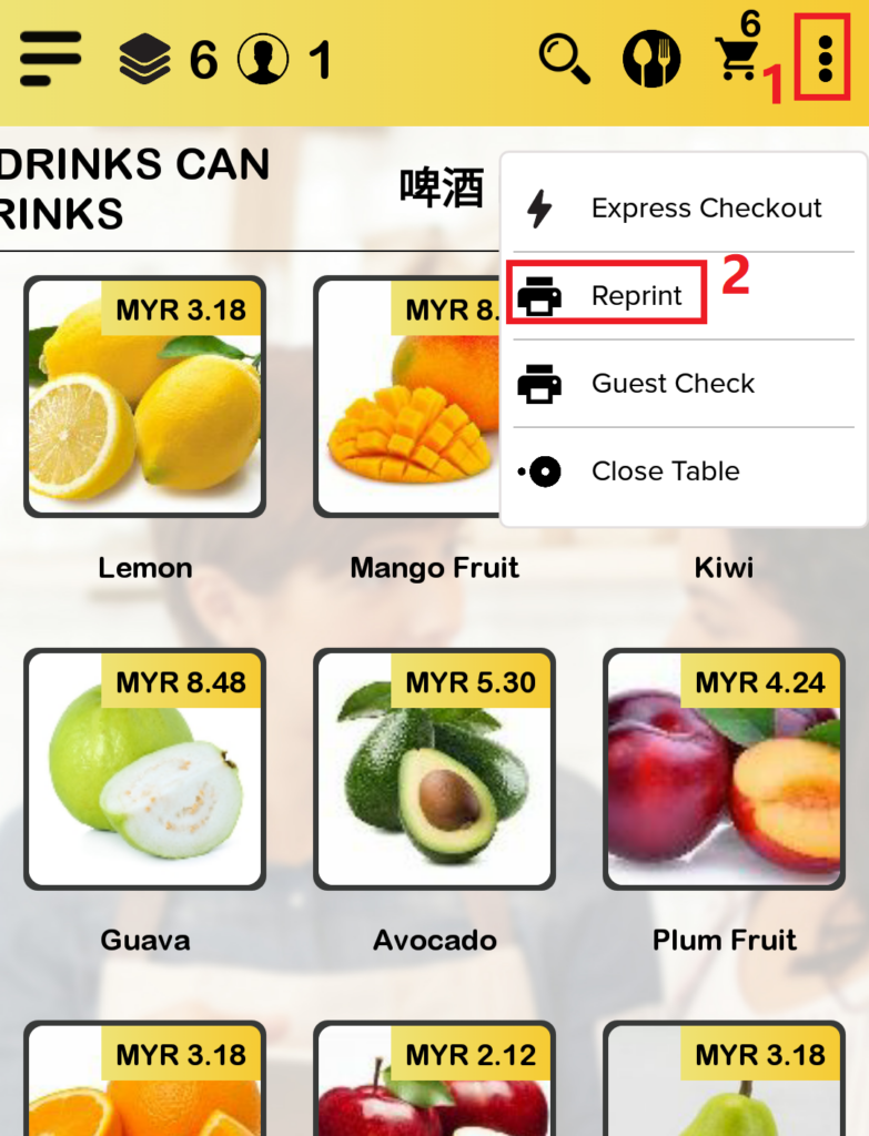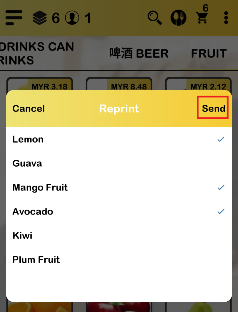 Reprint is used to print again the order summary while guest check is used to print a guest order summary for customers. This section introduces how to send transactions using the BIG Waiter app.