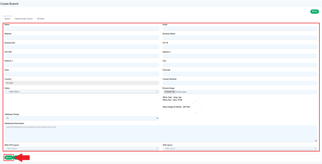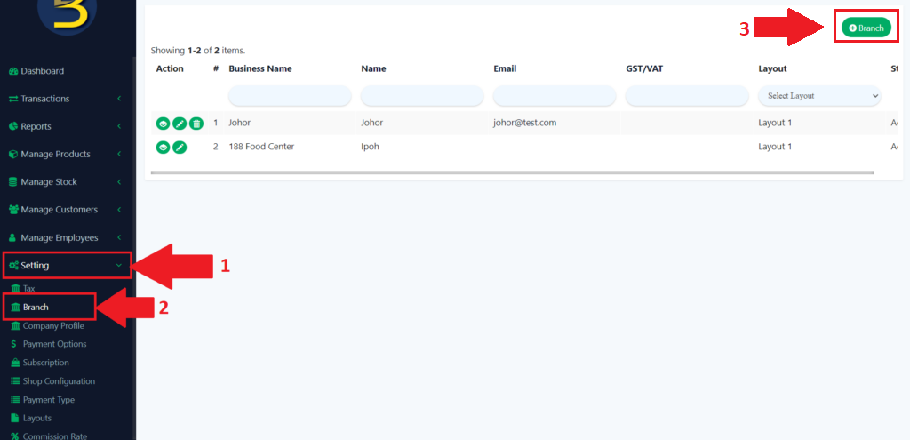 Creating a branch allows the creation of multiple branches of the company within various locations which can be controlled and monitored via the BIG POS Web Admin.