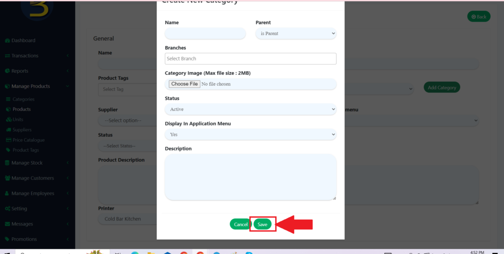 8. Then, you fill in the detail of the category that you want to add and then click on “Save” icon.