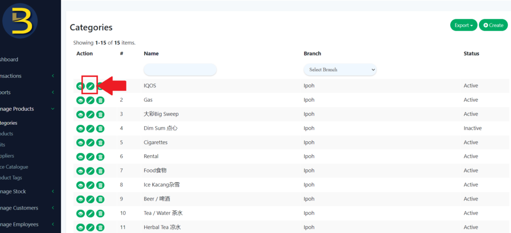 9. To update the detail of the category, you need to go to the pencil icon to update the detail of the category