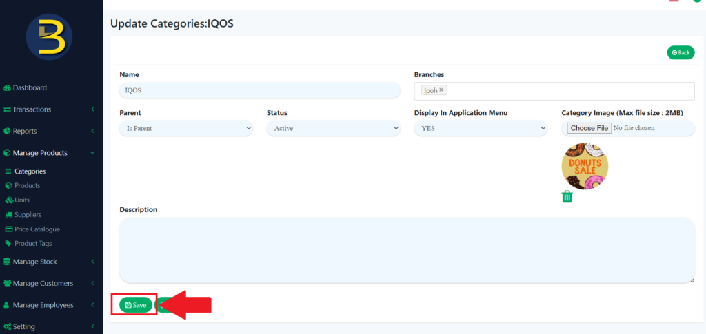 10. You need to update the detail of the existing category and then remember to click the “Save” icon to keep the updated version.
