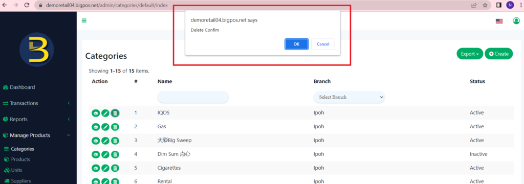 12. Then, it will pop up an alert message to confirm whether delete the category.
