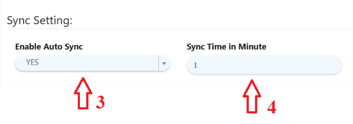 - Enter ‘Sync Time’ in minute, duration of synchronizing data.