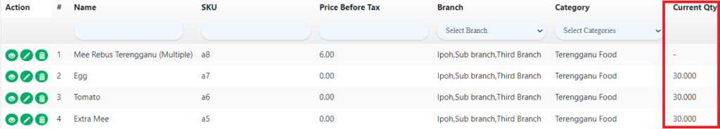 4. Check on “Track Stock Inventory“, and the quantity of Extra Mee and Tomato will automatically deduct.