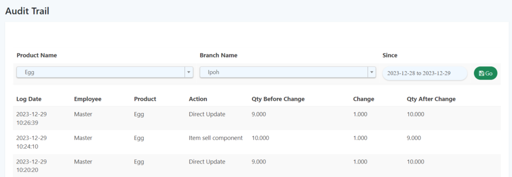 - Go to “Manage Stock” and click on “Audit Trail“.