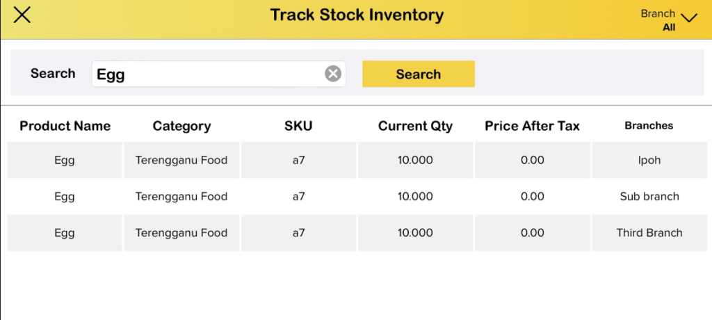 - Go to “Track Stock Inventory” and search name of products. The current quantities of the composite inventory stocks will be displayed.