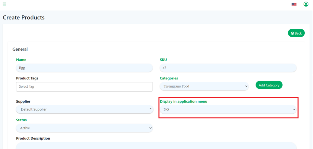 - To create composite products, go to “Manage Products” and click on “Products“. Select “No” for ‘Display in application menu’.