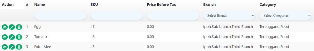 - On the web admin, egg, extra mee and tomato are based on specific rows for them.