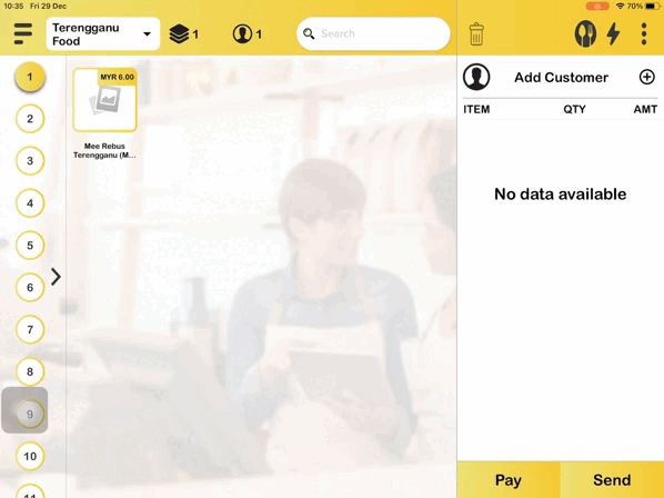 2. When the user places an order for Mee Rebus Terengganu (Multiple), they pick Extra Mee and Tomato in the multiple choice variants.