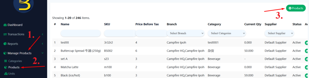 - Click “+ Products” button to enter the ‘Create Products’ page.