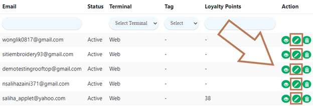 - After step 1,scroll to the right in the list of customers until the action column name, click on the pencil icon