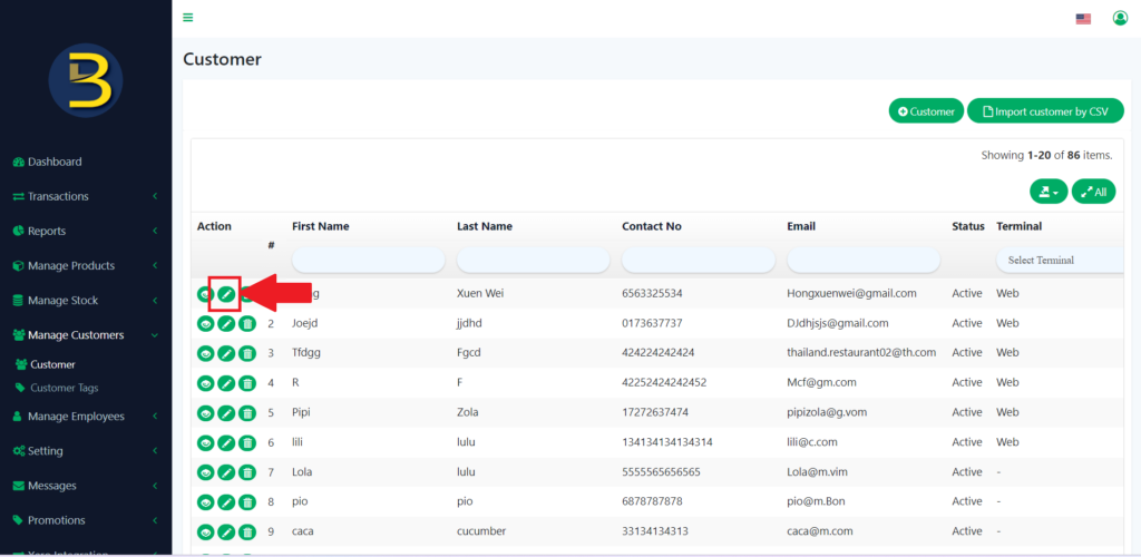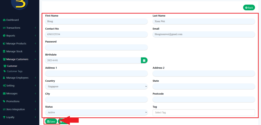 6. After you have reached the customer details page, you edit or update the customer detail and click on the “Save” button to save your updated version.