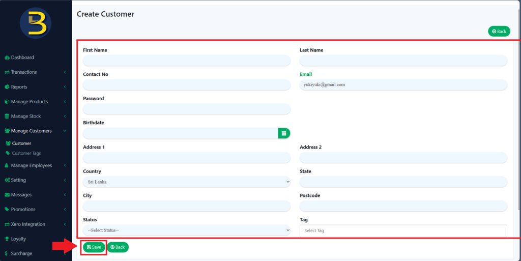 4. You need to fill in all the information and click the “Save” button to complete creating a new customer.