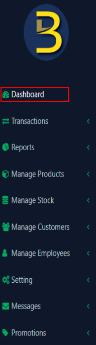 Dashboard is the main page of the BIG POS Web Admin. It gives you an overview of Total Customers, Today’s Transactions, and Today’s Sales. It also displays charts of Total Cumulative Sales (current month vs previous month) and Today’s Sales per Branch chart.