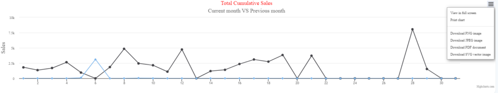 Total Cumulative Sales(Current month VS Previous month) Chart