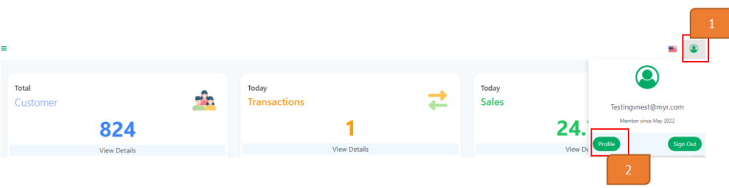 - When you click on ‘View details’ under Today Transactions section, the page will lead you to Transaction > Transaction page