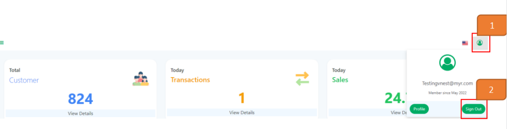 - Click on the human icon on the top right corner of the page, then click on Sign out.