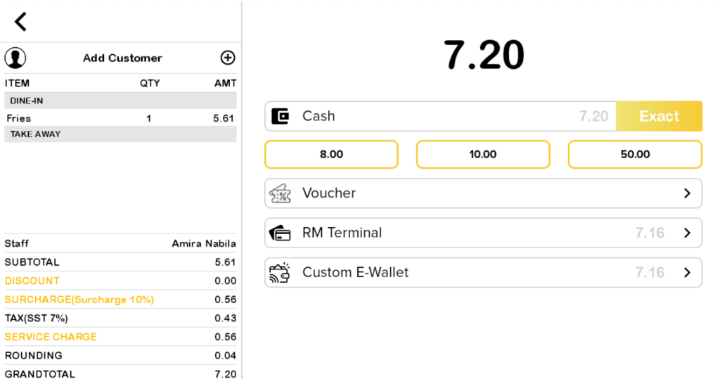 3. When creating a random order and clicking the ‘Pay’ button, you will notice that the only payment options available are ‘Voucher’ and ‘RM Terminal’.