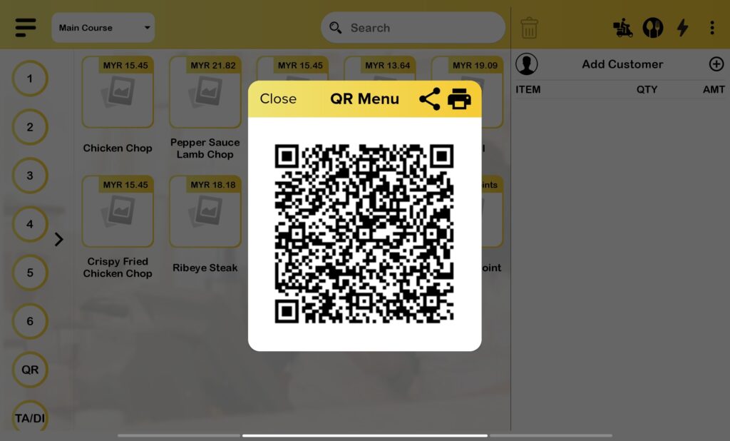 - After choose table, pro apps will generate the QR code and user will need to scan the QR code to make order via QR menu.