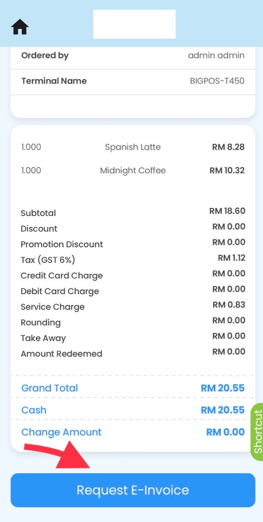 - The customer needs to set up E-Invoice in Web Admin, if not the ‘Request E-Invoice’ button will not show.