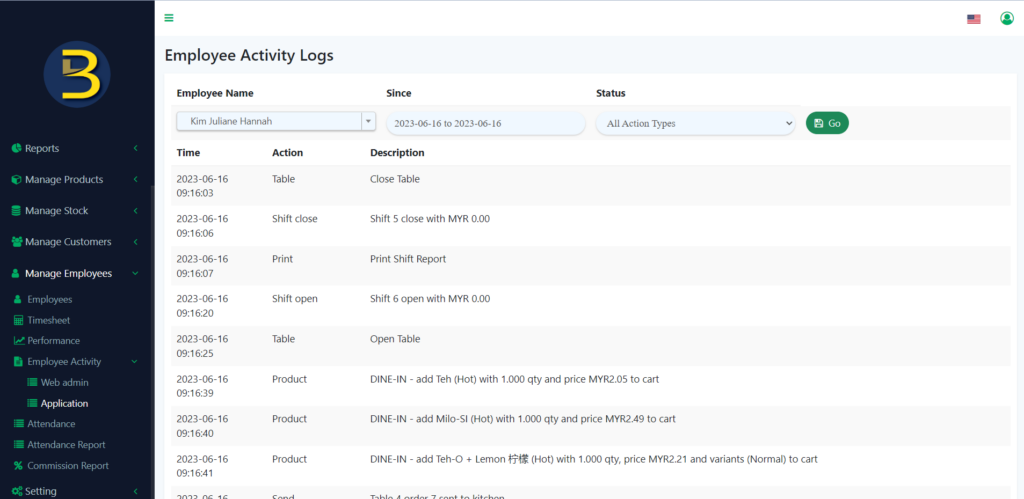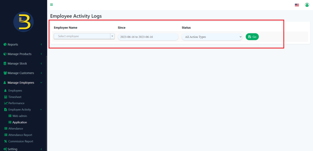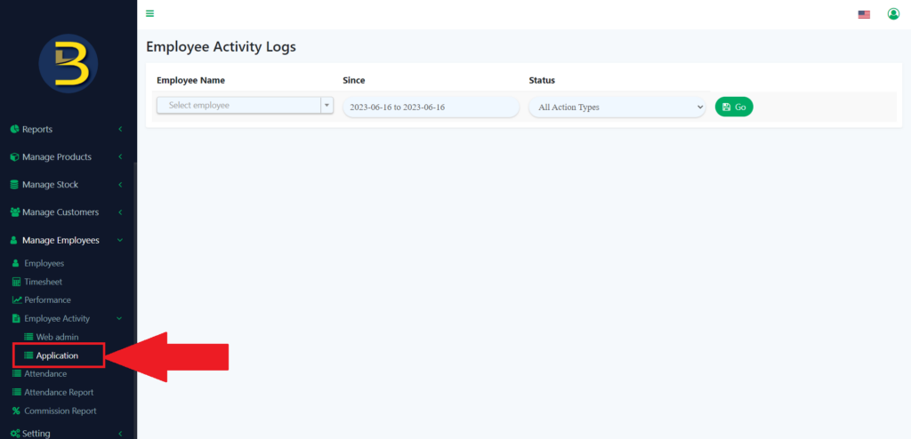 6. To check employee activity in-app, you just need to click on the “Application” in the left panel to redirect you to the page.