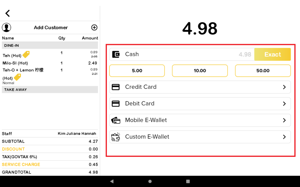 4. For printing receipts, you need to click on the pay button to go to the next page.