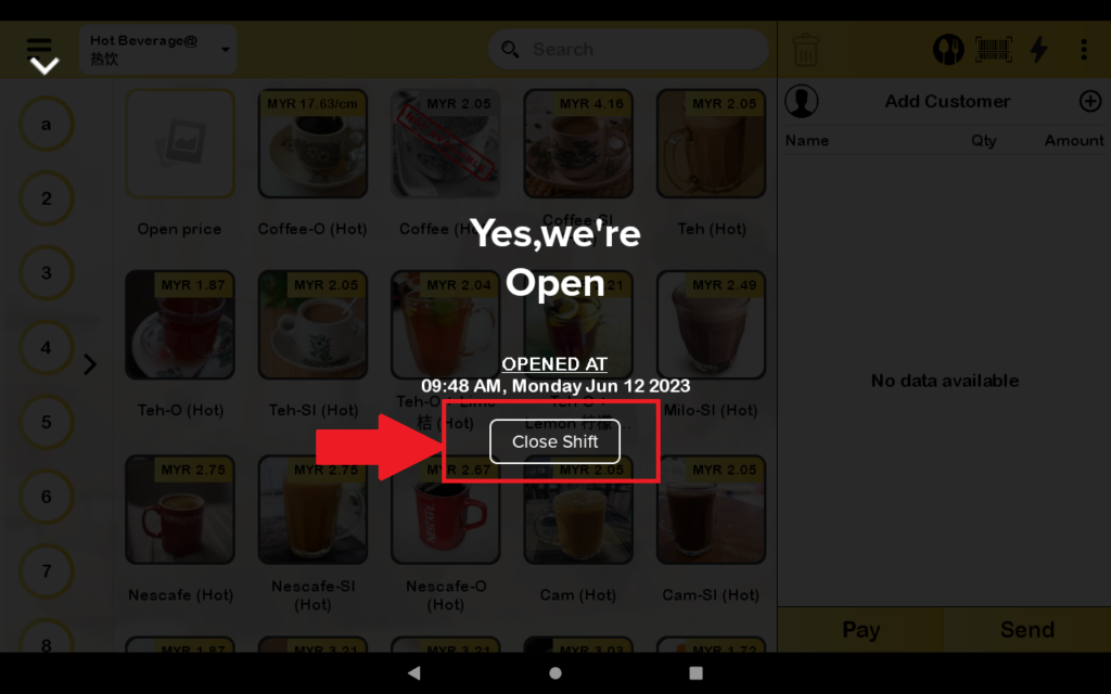 8. For printing the shift report, you need to close the shift first.