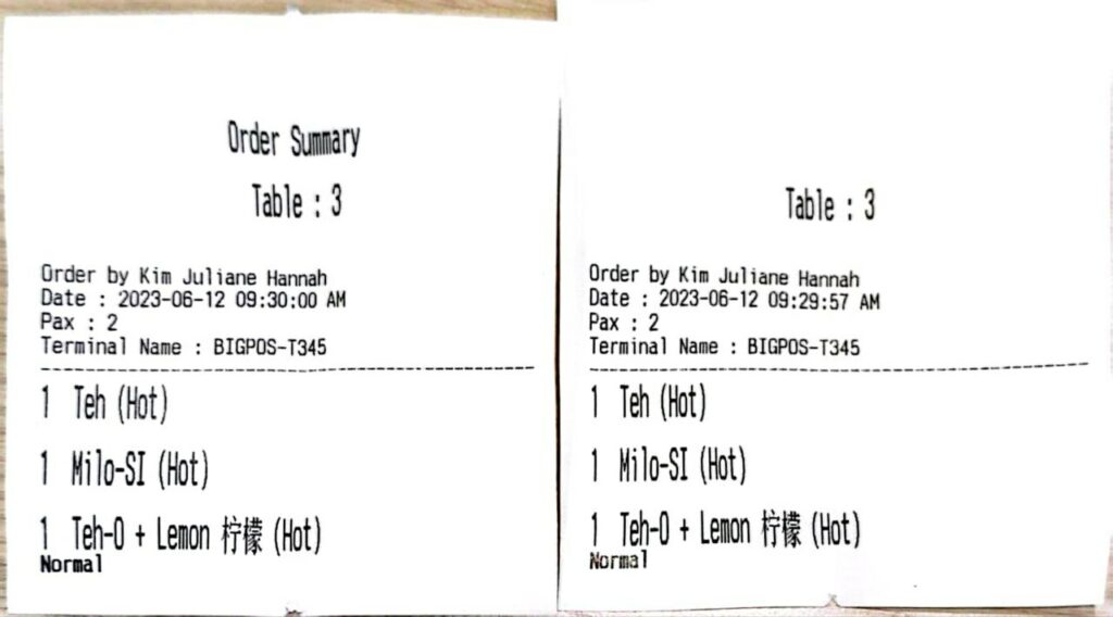 3. The kitchen orders will be printed out.