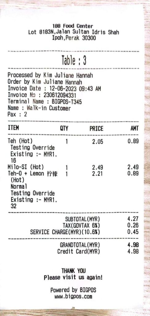 7. Receipt will be printed out.