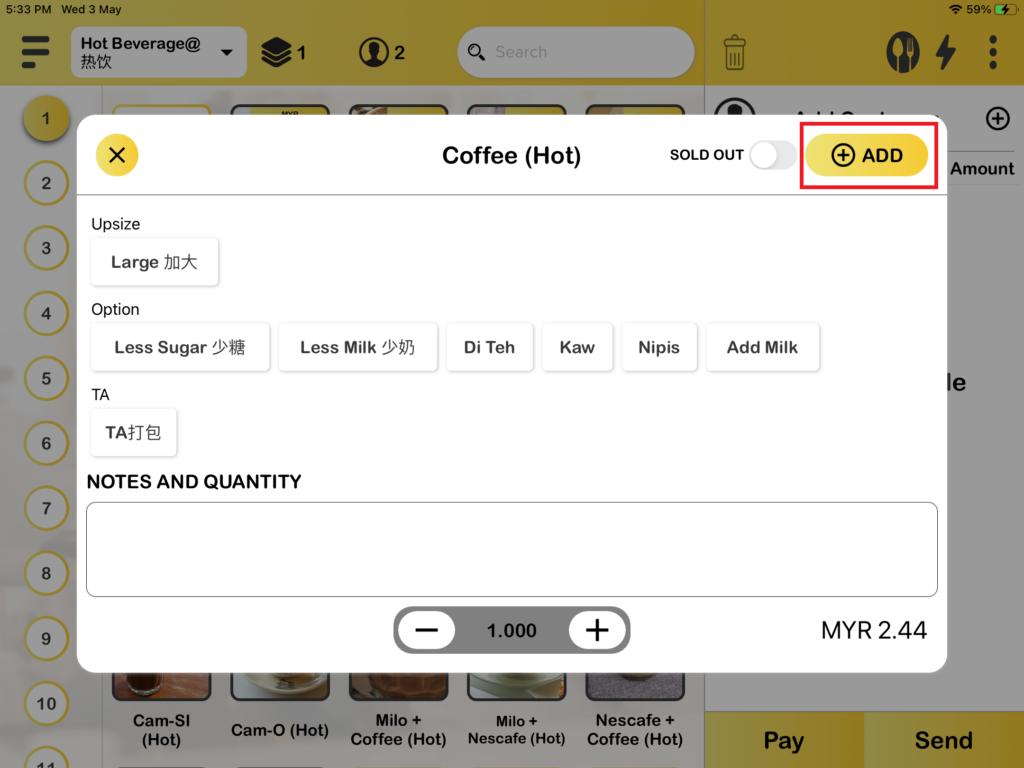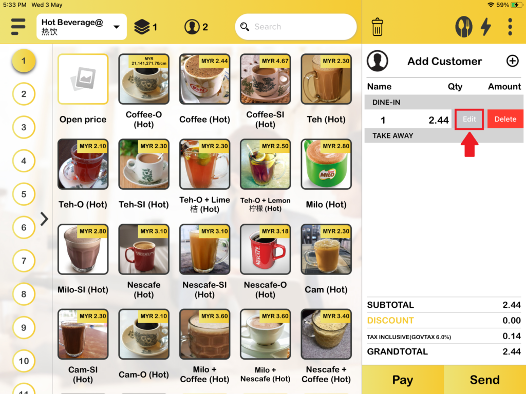 Add/update/delete items in the cart are the basic function to use in the POS system. Add items in the cart which are adding items you want to purchase into the cart. Update items in the cart which are change items that you want to purchase in the cart. Delete items in the cart which is deleting orders that customers order that they not needed. This post will show you how to use Add/update/delete items in the cart in BIGPOS App.