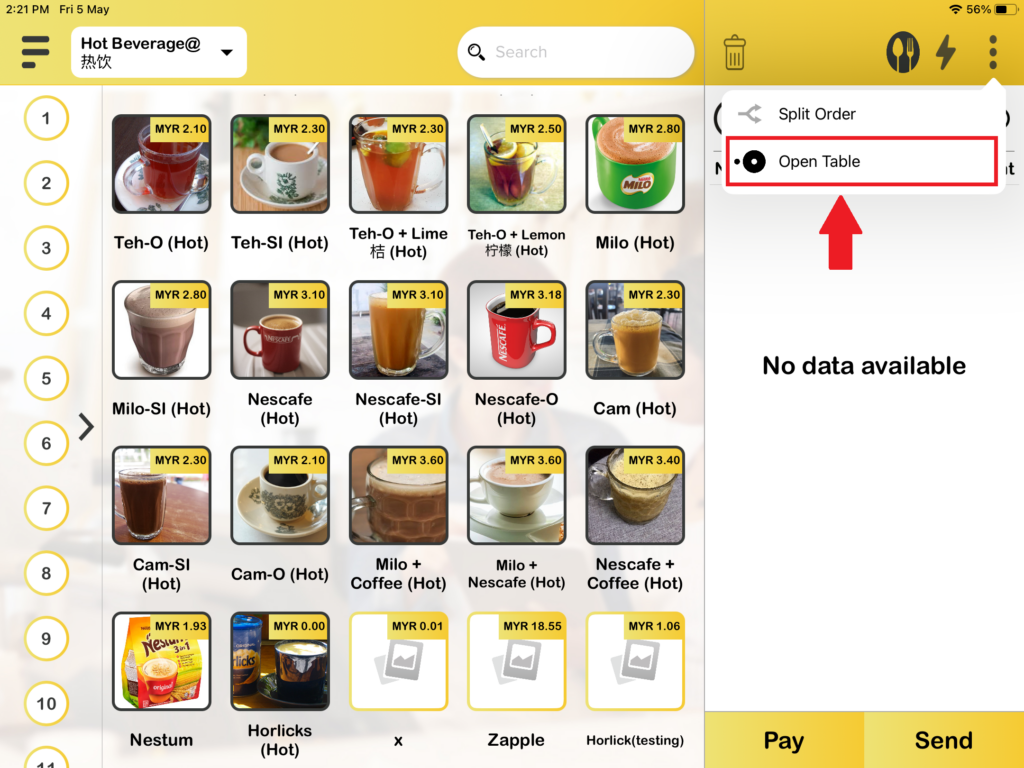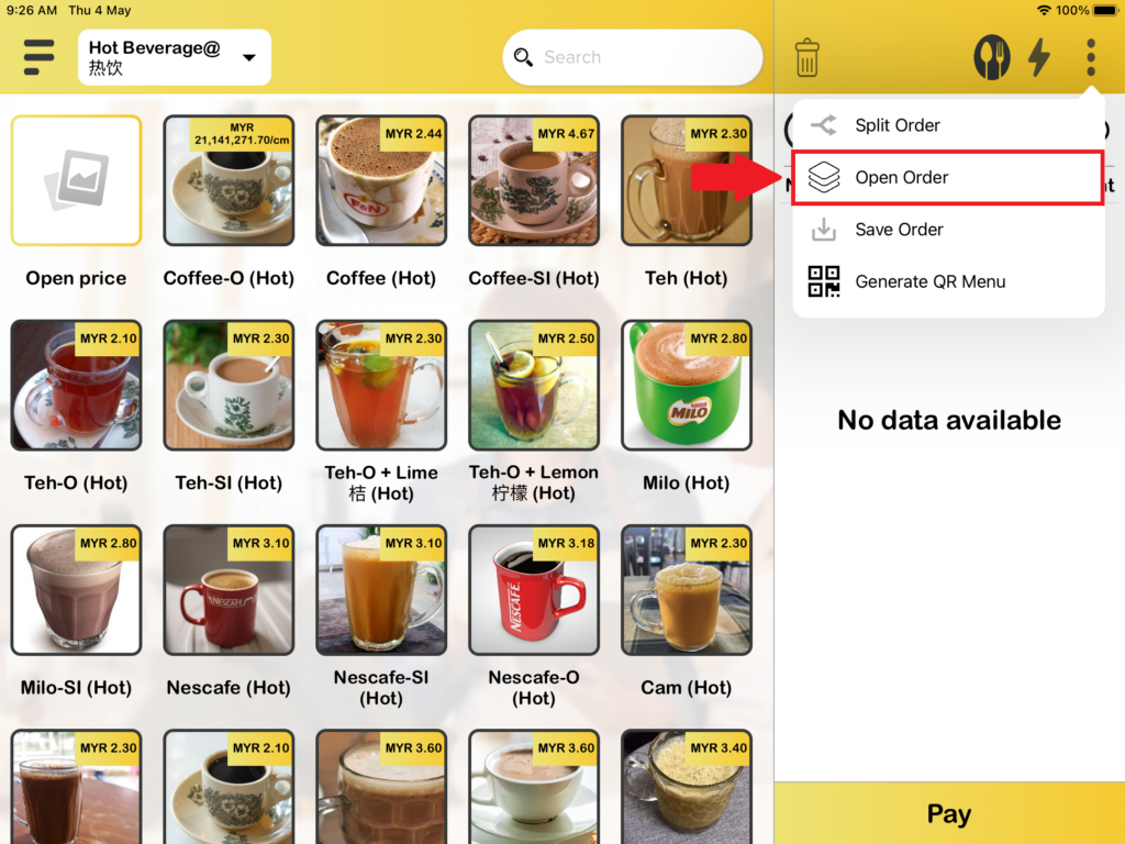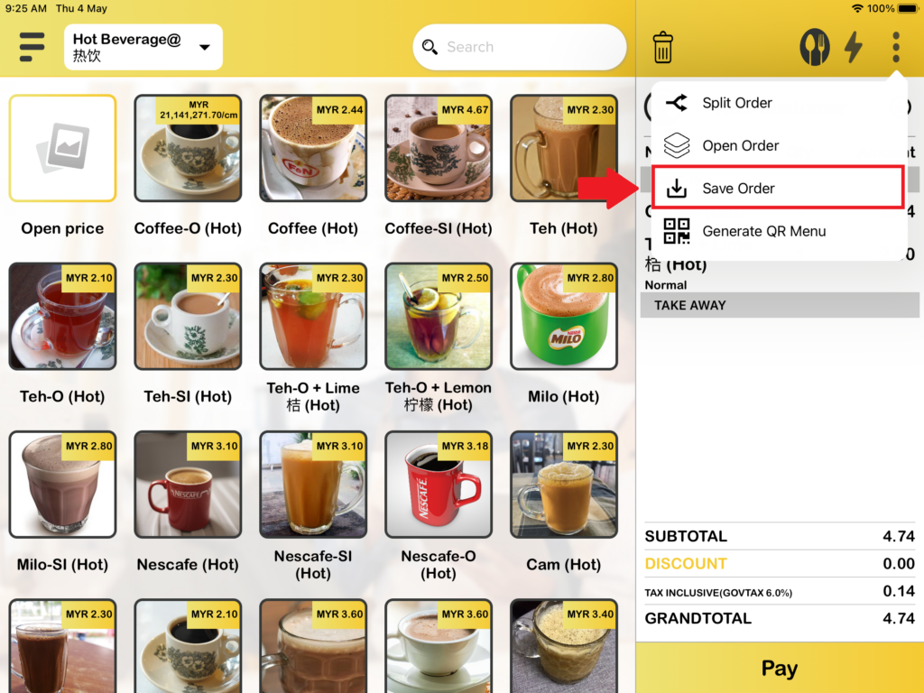 1. Firstly, the Open orders available for Queue and Tag business modes only. You need to “Save Order” before “Open Order“. When you are in Queue number or Tag number business mode you can see there is an “Save Order“, you need to add item into the cart to proceed “Save Order“.