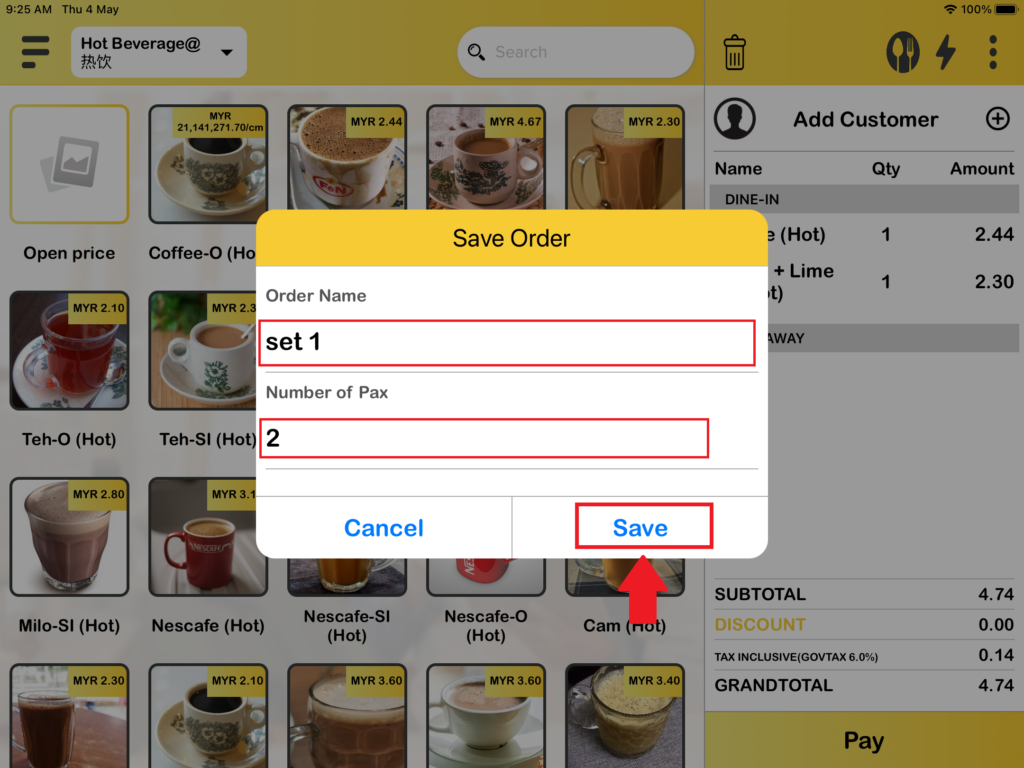 2. After pressing “Save Order“, there is a save order box pops out. You need to fill in the information for the order and press “Save“.