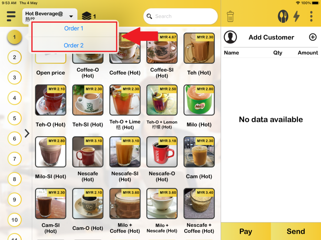 2. When you are in Table number business mode, you can check “View Order” in 2 ways. The first way to find “View Order” is by pressing the table icon on the order page. Press it and you will be able to check your orders.