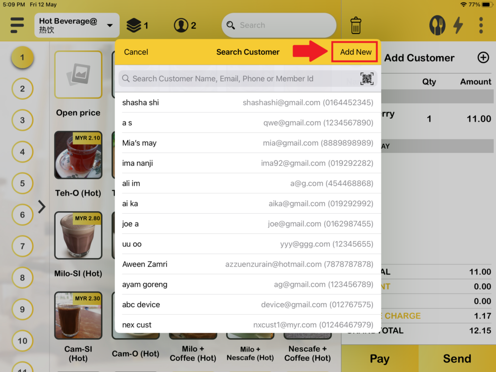 1. When you create new orders, you can add customers to the order by press “Add Customer“.