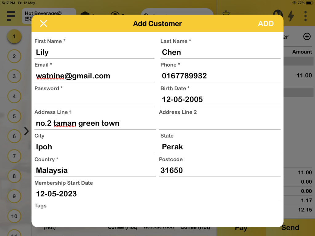 5. After pressing “ADD“, the customer will add to the BIGPOS System.