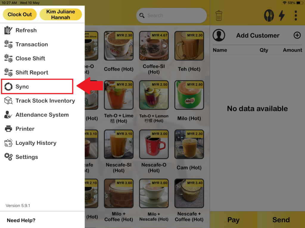 5. After done setup in web admin, go to BIGPOS App and remember to press “Sync“.