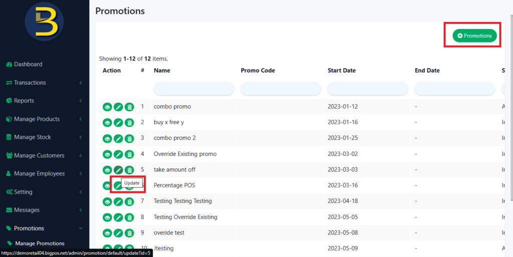 2. After that, if you don’t have any promotions, you can create one. If you already have one you can just choose to update.
