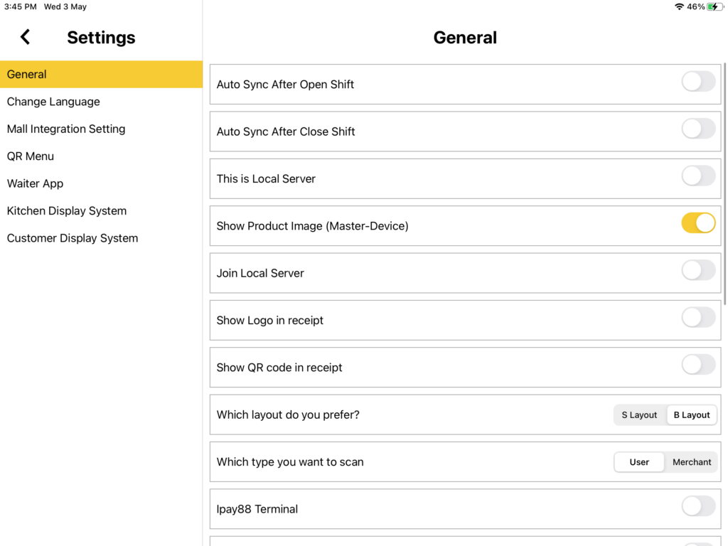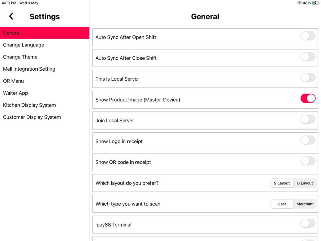 Customizing the POS (Point of Sales) display layout can make user friendly, there are two types of display layouts which are the S Layout and B Layout. In S Layout, there is a change theme function, which let users change color by themselves. But in B Layout there is no theme function, it all depends on the user.