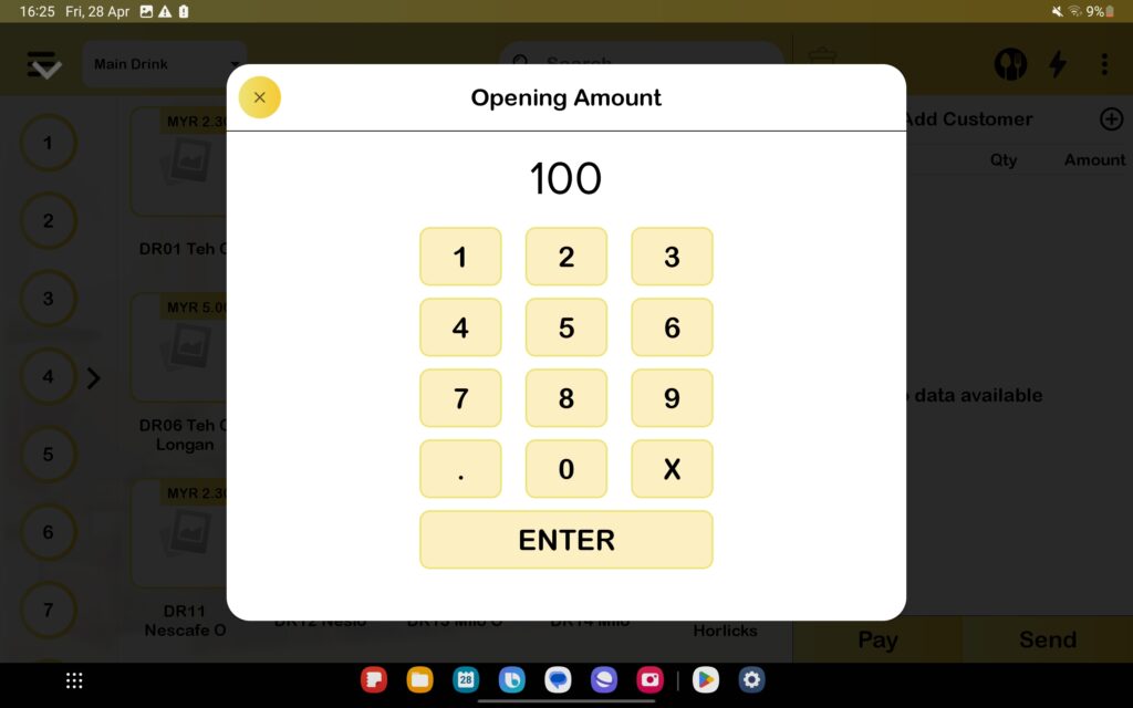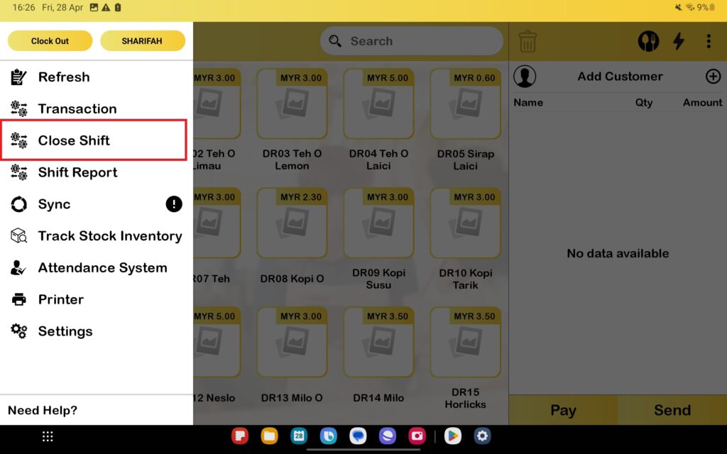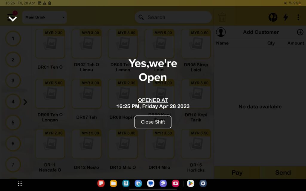 - After you successfully login into your account with your 4-digit PIN, you will see the “Open Shift” button and press it to open shift.