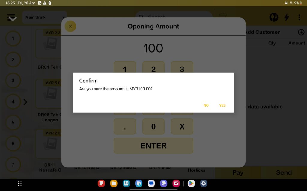 3. After that, you need to press “Yes” to complete the open shift action and that how to open a shift in BIGPOS Pro and Lite.