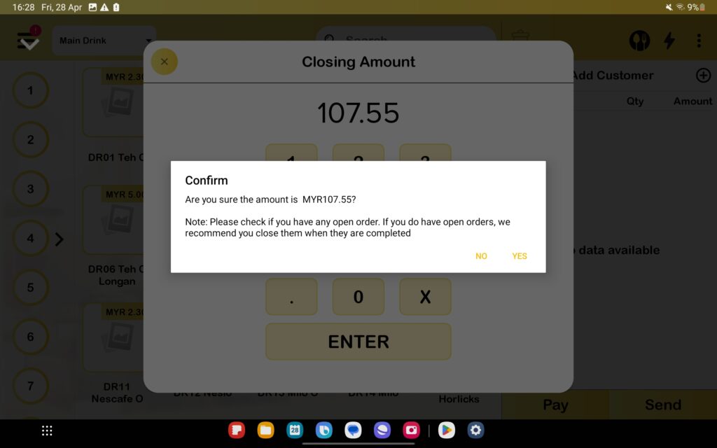 4. After that, you need to press “Yes” to complete the close shift action, and that is how to close a shift in BIGPOS Pro and Lite.