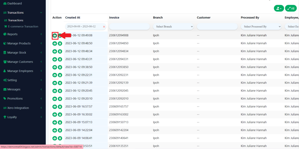 3. Then, you can use the search button in different categories to search for certain transactions.