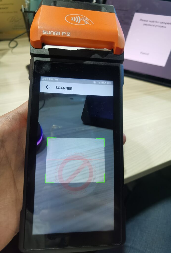 While the Revenue Monster Terminal will automatically change to scanner page to scan E-wallet QR Code.